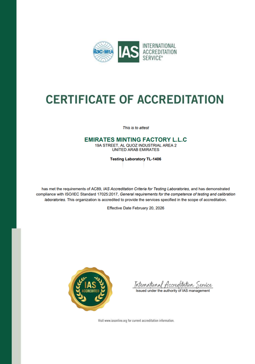 At Emirates Minting, we are committed to excellence, sustainability, and responsible practices in every aspect of our operations. Our internationally recognized certifications reflect our dedication to quality, environmental care, and the highest standards of safety and integrity.